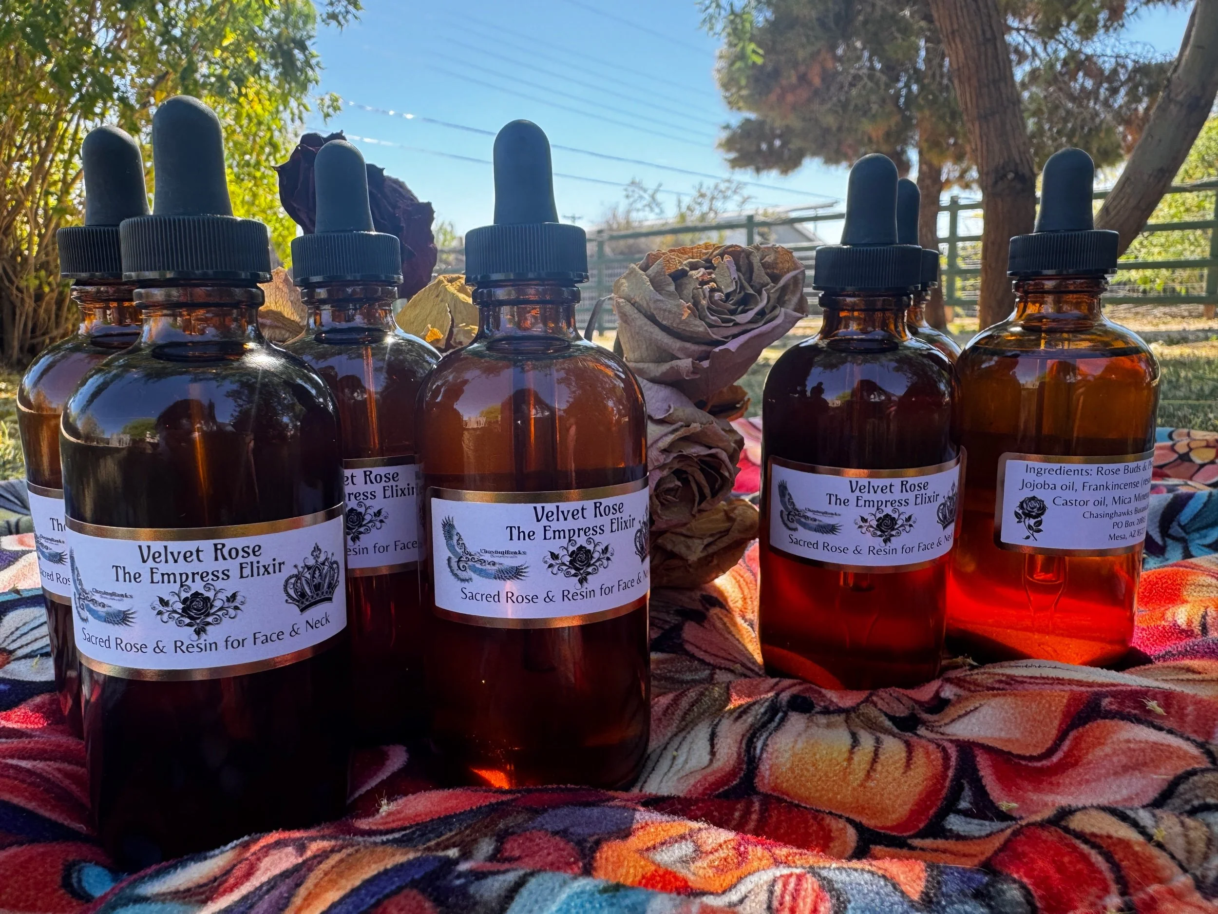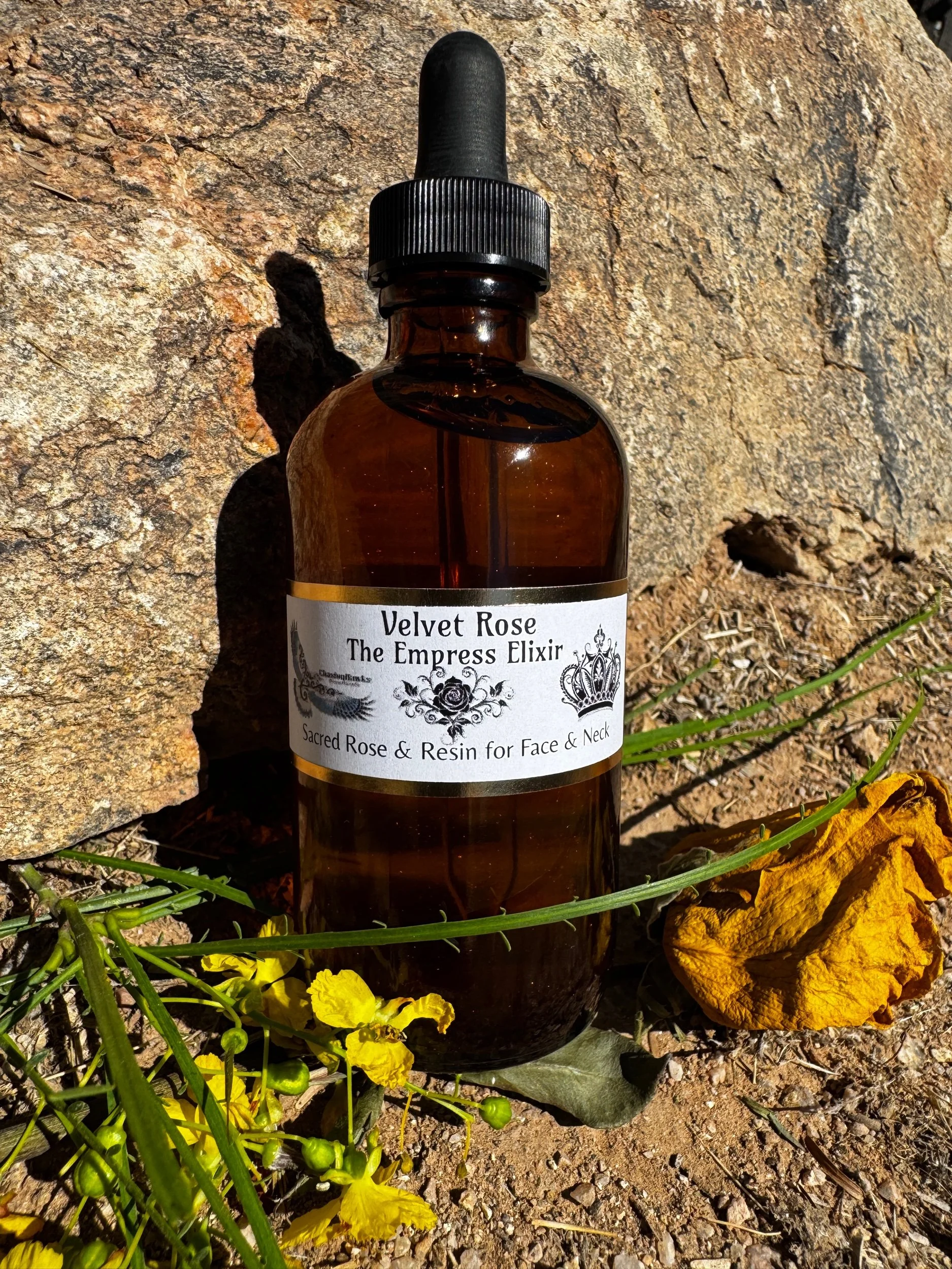 Shop › Velvet Rose “The Empress Elixir” Velvet Rose “The Empress Elixir” $50.00 Rose buds & petals infused in Jojoba oil, Castor oil for deep penetration and mica mineral for a beautiful “Empress”glow. Rose buds & petals infused in Jojoba oil, Castor oil for deep penetration and mica mineral for a beautiful “Empress”glow. Add To Cart Added!
